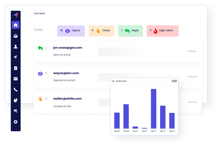 emails, link clicks, upto 3 ping sequences (Follow-up) per email and