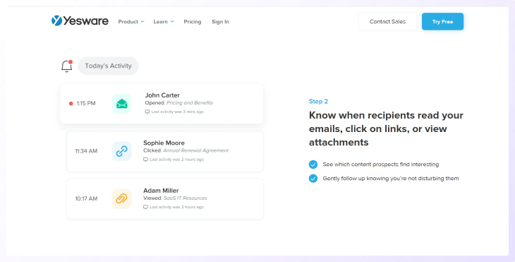 With ClearSlide, sales reps receive real-time alerts of email opens,