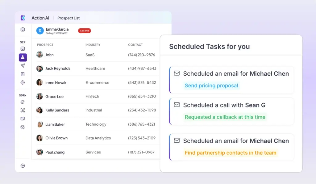 Example: If a prospect says – "Call me Friday at 3 pm," then Action AI schedules that follow-up automatically.
