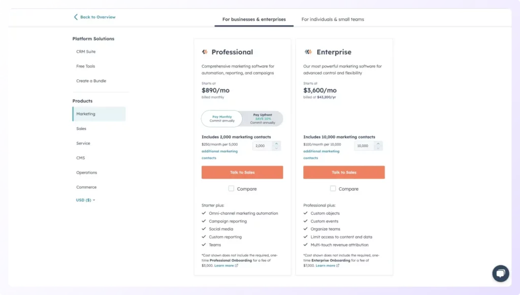 ‘Plans for Enterprise’ has 2 different tiers—’Enterprise’ and ‘Unlimited’—aimed at large enterprise sales teams.