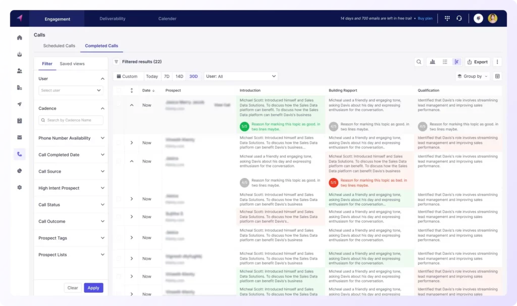 - Outcome Detection: Filter for specific call outcomes as AI automatically assigns them with detailed notes and syncs the information to the CRM.