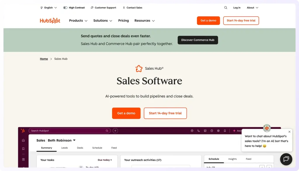 HubSpot Sales Hub is the sales execution layer of HubSpot's broader CRM platform, combining contact management, email sequencing, pipeline tracking, and calling in one place. It's a strong fit for teams already on HubSpot CRM who want engagement tools without switching platforms.