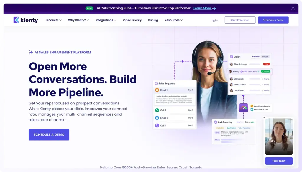 Klenty is a sales engagement and dialing platform built specifically for calling-first SDR teams. Unlike Outreach, which treats calling as an add-on, Klenty is architected around the phone with proprietary infrastructure for number health, connect-rate optimization, and live coaching wrapped inside a full account-based engagement system.