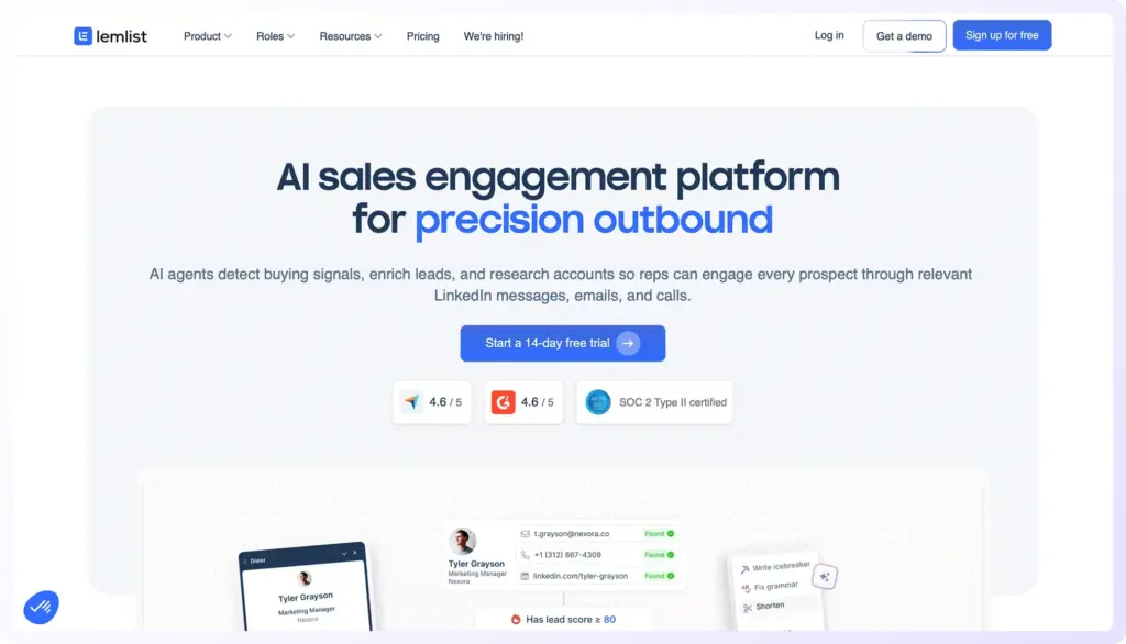| Lemlist | Email outreach, Dynamic personalization, Deliverability tools | $39–$159/month | 4.6/5 |