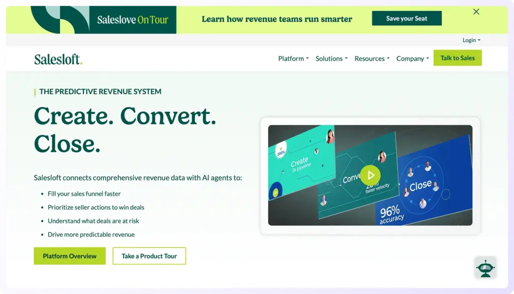 | Salesloft | Revenue orchestration, Cadence management, Deal intelligence | Custom pricing | 4.5/5 |