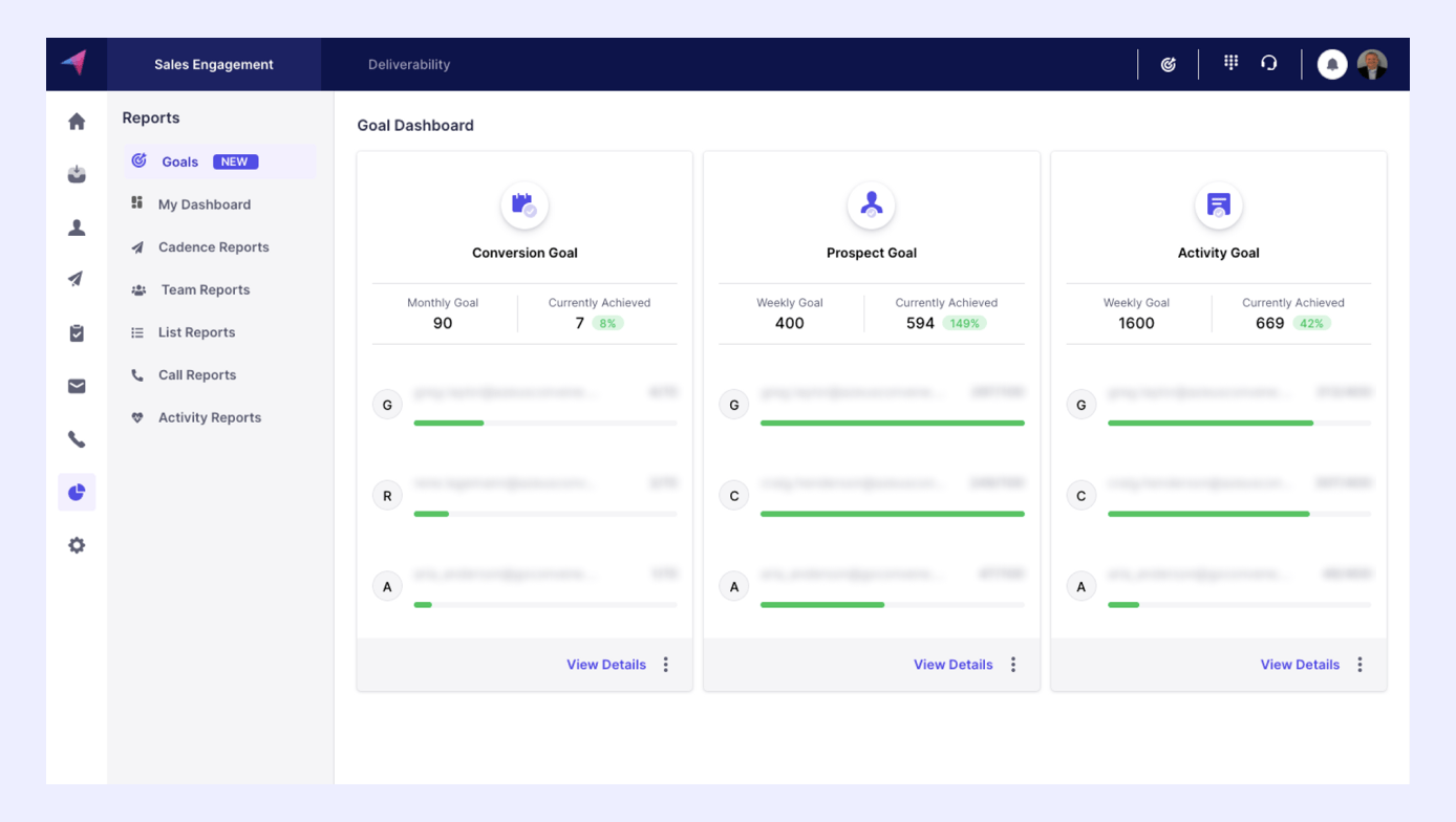 clicks, and responses, call outcomes and notes, and LinkedIn