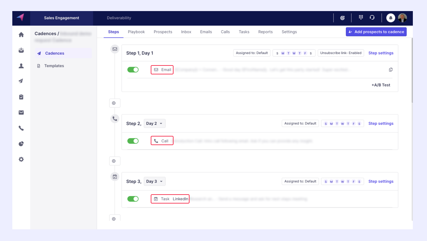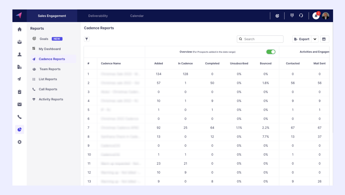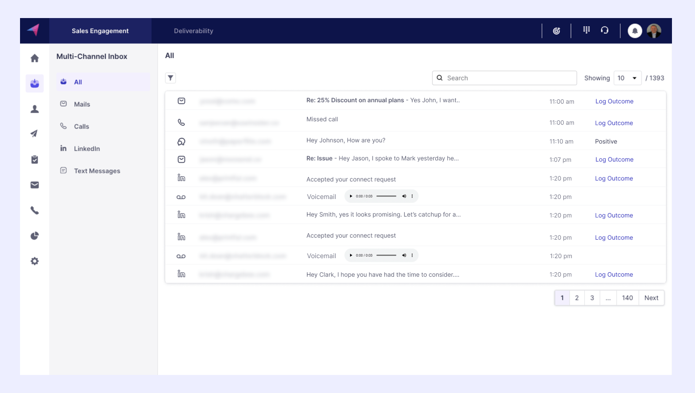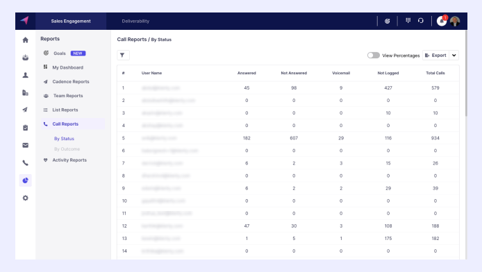 clicks, and responses, call outcomes and notes, and LinkedIn