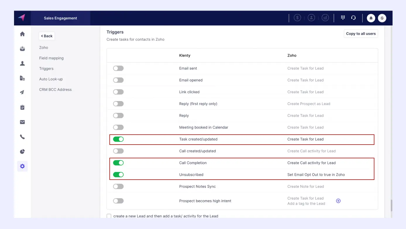 the opt-outs, [Klenty] updates Zoho automatically. The