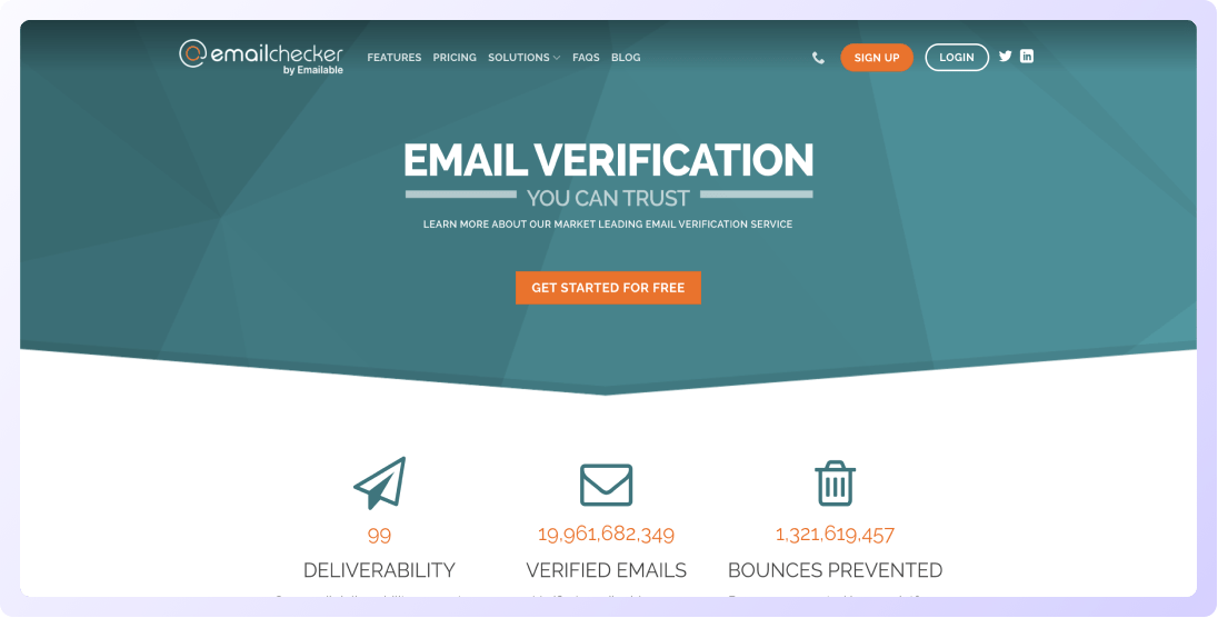 Their basic plan starts from $17/month that lets you verify 10,000 emails.