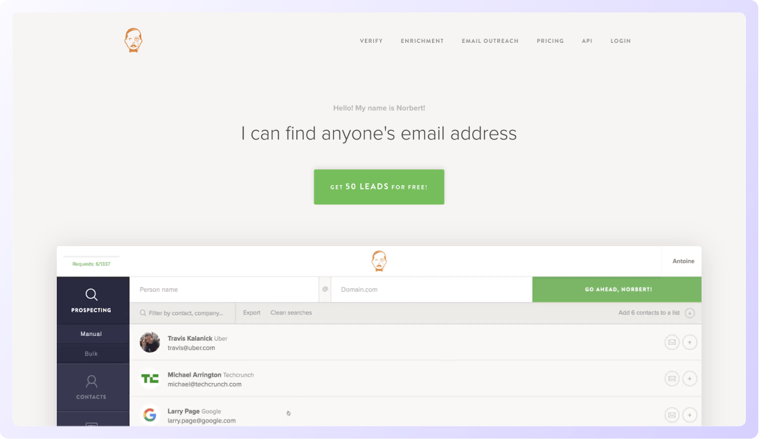 One of the most popular email finding tools, Hunter.io also offers an Email verifier tool that come with several handy features like email format validation, DEA detection, MX records check, SMTP server connection, etc.