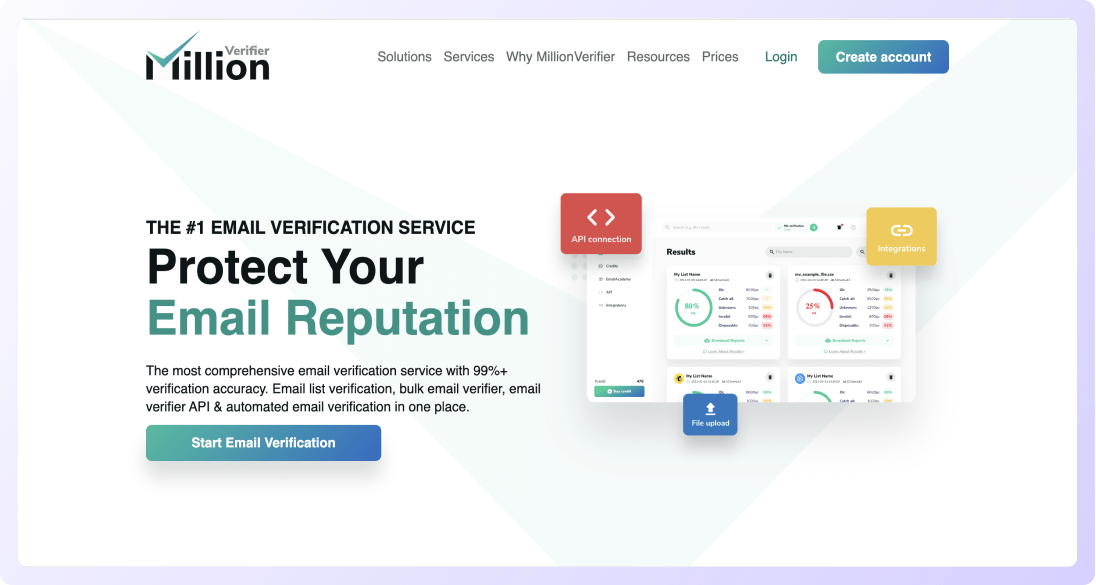 Millionverifier Offers email address checker services and real-time validation as subscribers sign up on your website.