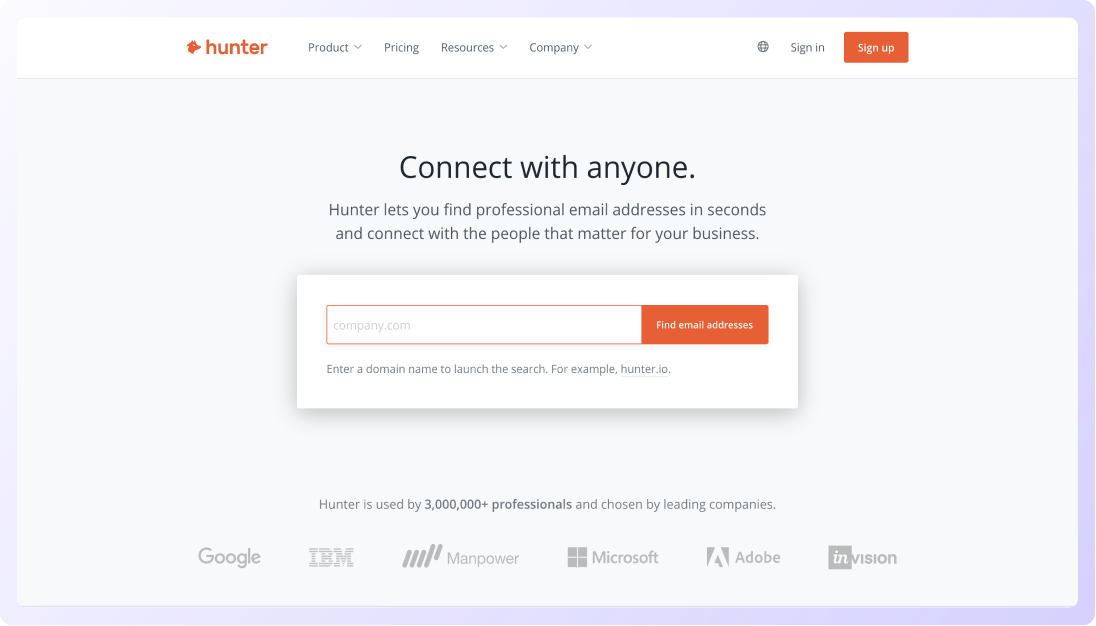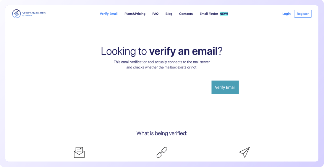 One of the most popular email finding tools, Hunter.io also offers an Email verifier tool that come with several handy features like email format validation, DEA detection, MX records check, SMTP server connection, etc.